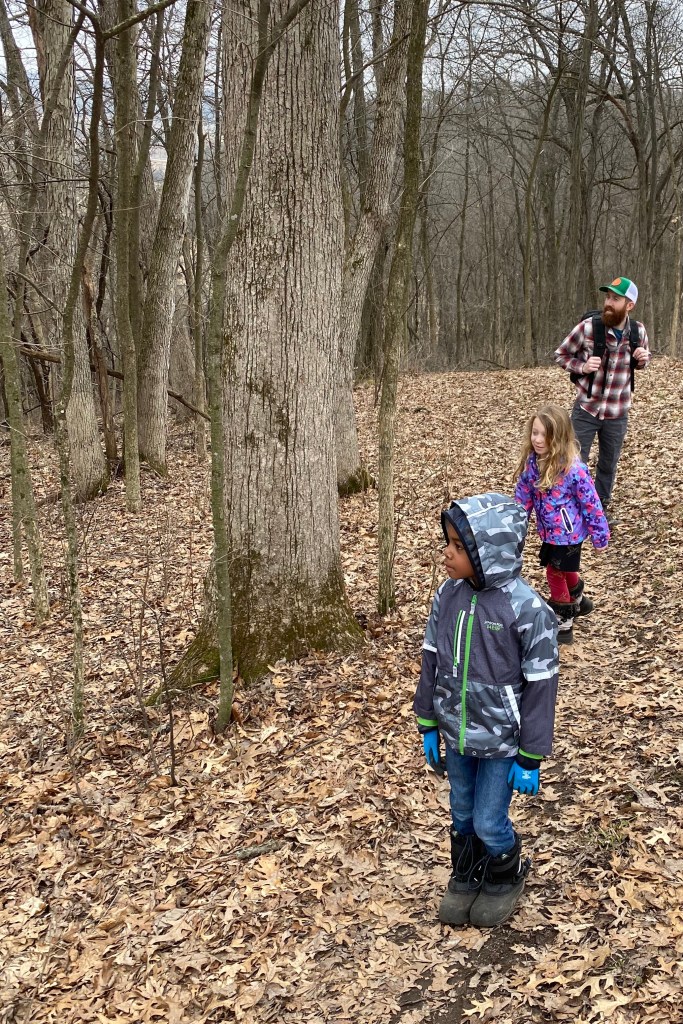 March 25, 2020. For our second adventure, we headed to Festge County Park. Having never been, we didn’t know quite what to expect. We reviewed our map and hit the trails running (well, again, the kids were running and the adults tried to keep up). We celebrated any signs of new life we could find, which mostly consisted of sporadic weeds/ground covering in the woods. The sky was gray and the air was heavy. During quiet moments, when we were still, we could feel the palpable loneliness of the pandemic times. While we thoroughly practice gratitude in our family, we realized, we weren’t making much space for the sadness. On that day, we began making room for both. We lamented a school year not ending the way we’d hoped and a birthday party that wouldn’t come to be. We missed our friends. We missed hugging loved ones. We missed sharing meals with family and talking to our favorite baristas. We missed tennis, piano, and karate. We missed being immersed in our faith community. We missed so much! It was hard and lonely AND we were so grateful for our ability to feel so deeply. We felt grateful that we have loved ones to miss. Grateful for food and the privilege of shelter. Grateful for an incredible foursome to be “stuck” with during a shut down. Grateful for health enough to hike. We found it was possible to welcome in the sadness and worry while remaining grateful. It’s a both/and practice we continue to engage. Sometimes beauty and hope blossom when we are brave enough to sit in the stillness of despair.