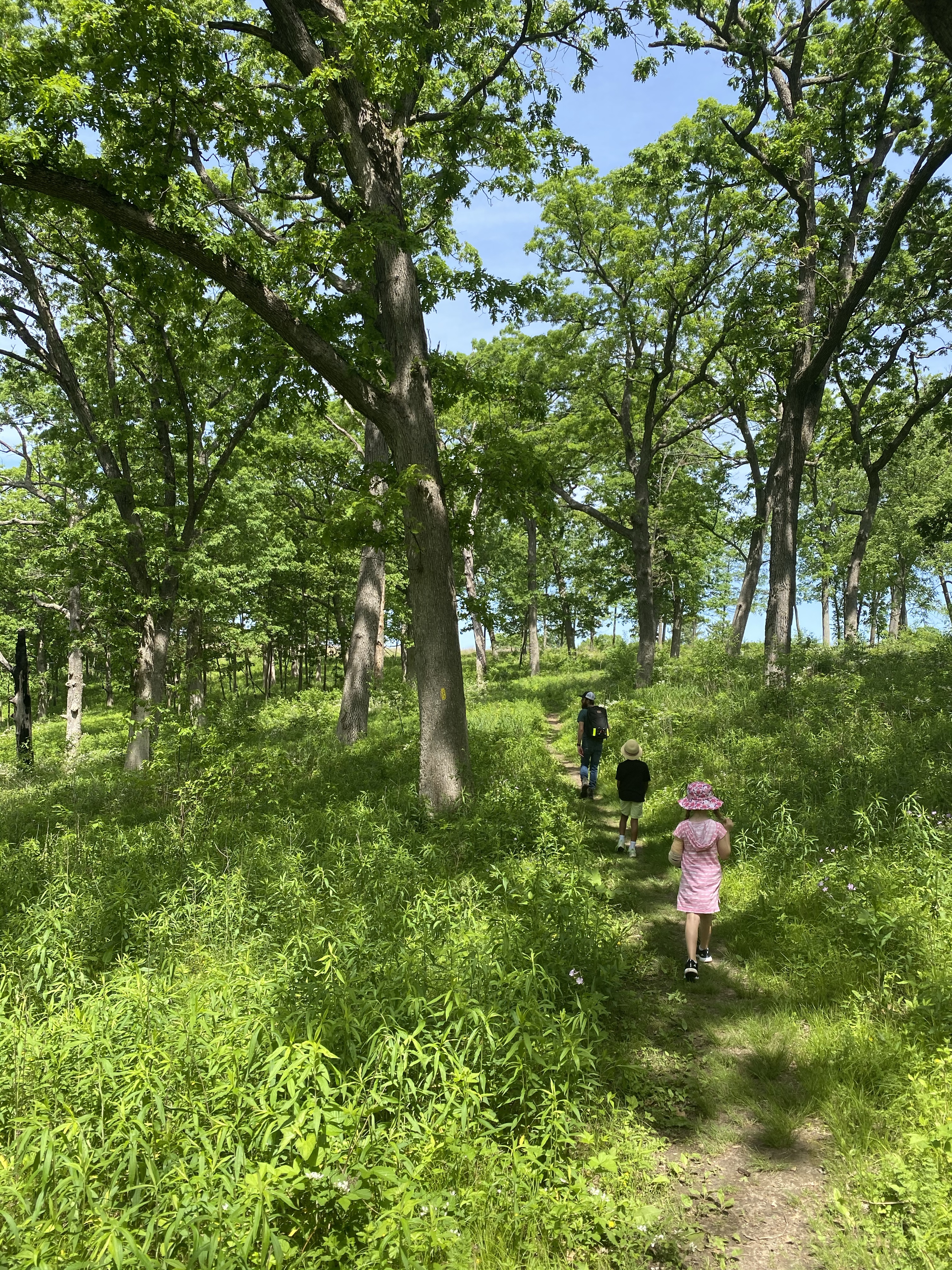 June 4, 2020. It was a beautiful sunny day and we were headed back to the ice age trail! Not long into the hike, we encountered a challenge. Spiders were busy at work weaving webs across the path. We worked hard to keep our positive attitudes despite the constant feeling of spider webs (and at times spiders) on our skin. Eventually we made it through that overgrown section of the trail and onto a wider path. Then, we made it to the prairie. The discomfort of the spider webs faded and the warmth of the sun, discovery of butterflies, and resounding laughter persisted. Those spider webs serve as a beautiful metaphor for our feelings. Sometimes, when we are experiencing a really uncomfortable feeling, it feels like it will last forever. But no feelings last forever. In the midst of those webs, it felt like the itching and crawling feeling on us might never end. Yet, it did. No feelings last forever. They are like the clouds in the sky that float by. One step at a time. One day at a time, we continue to make our way through the webs. Our hope—that we remain brave enough to trust that the webs will not last forever and even within the webs we can find beauty!