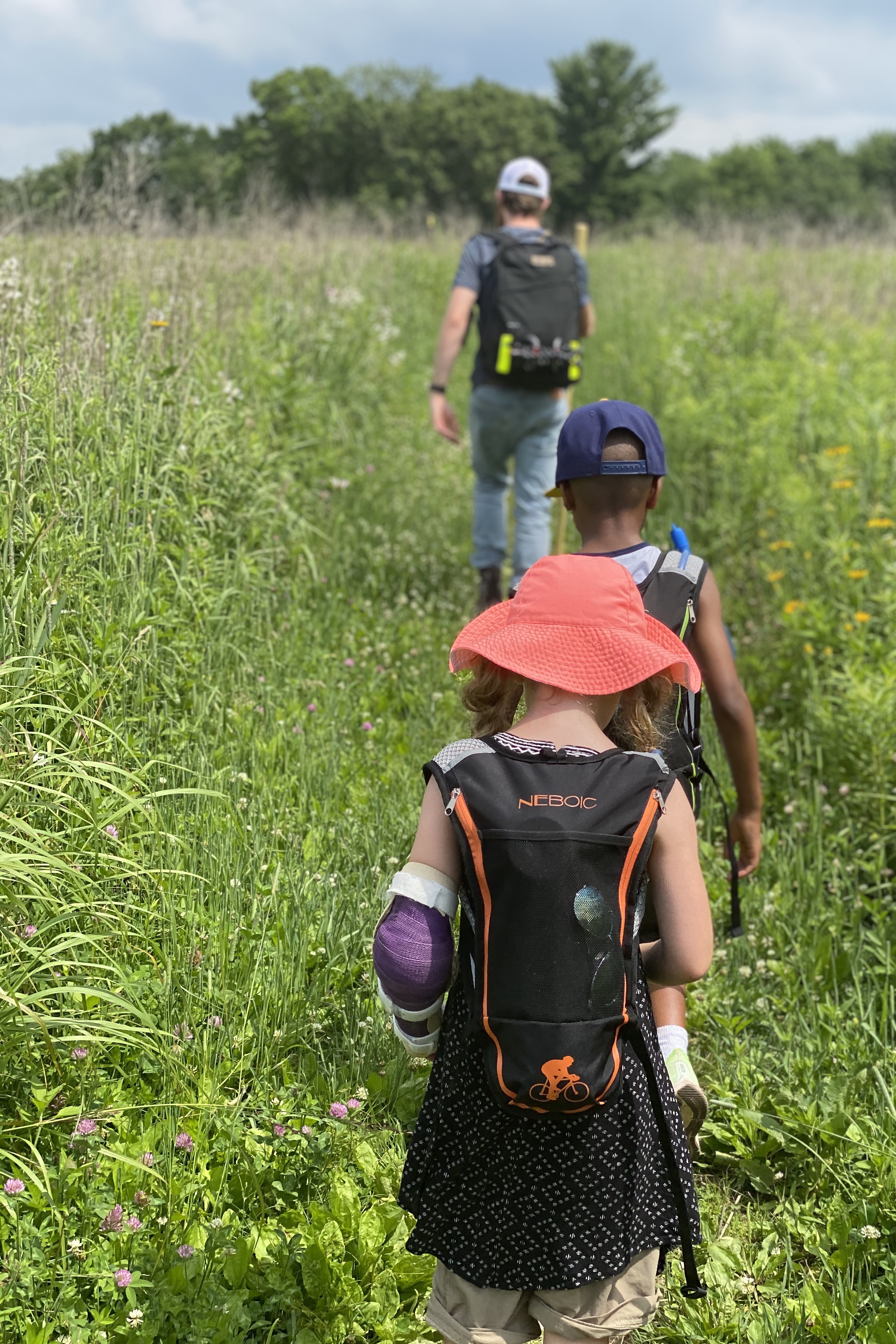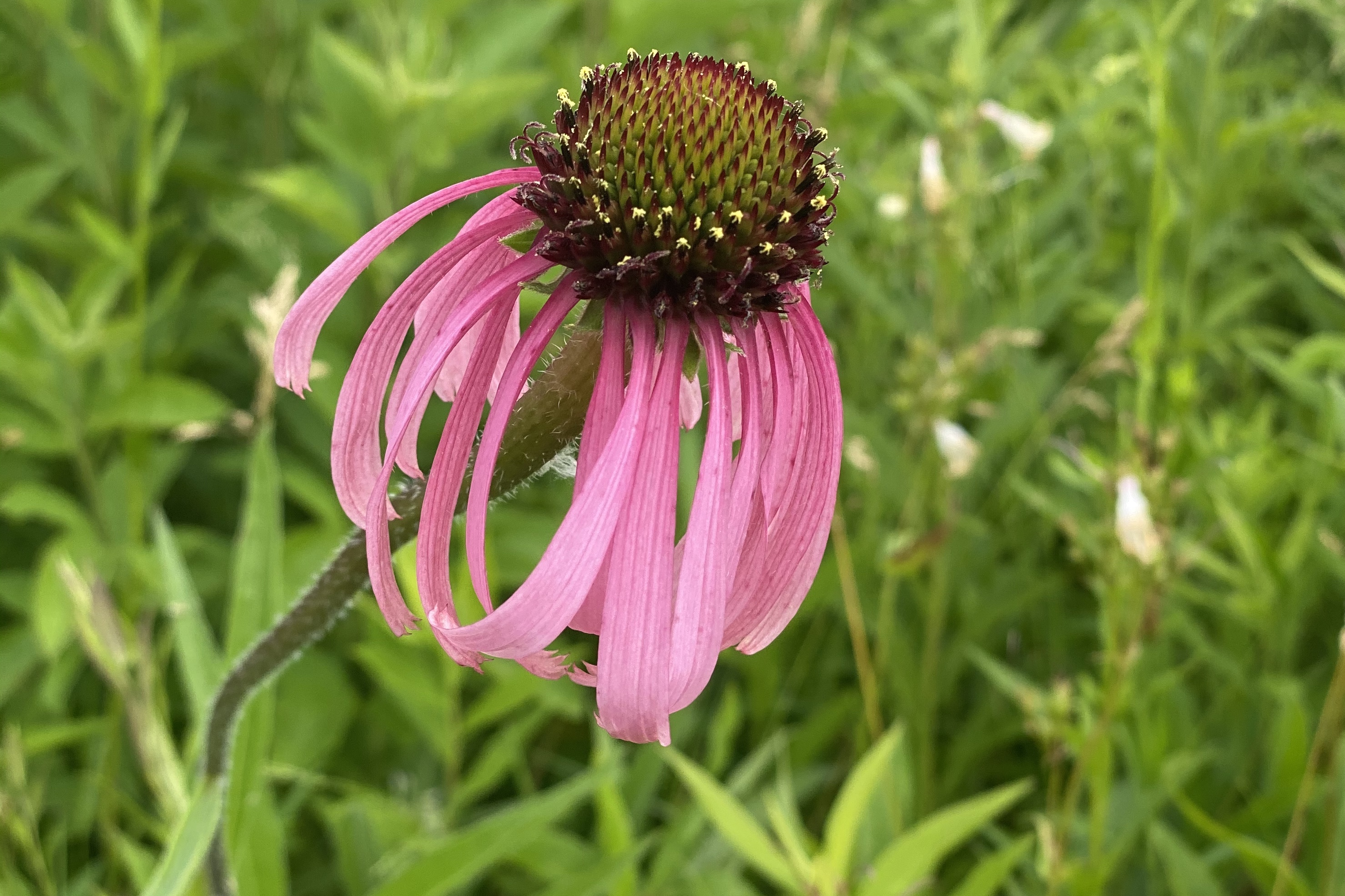 June 28, 2020. The observations continued today as we traversed the Ice Age Trail. We thoroughly enjoyed the wild flowers of the prairie! At times, it felt like the most beautiful scavenger hunt. We searched for a purple cone flower amidst the white flowers and a lone sunflower on the horizon.