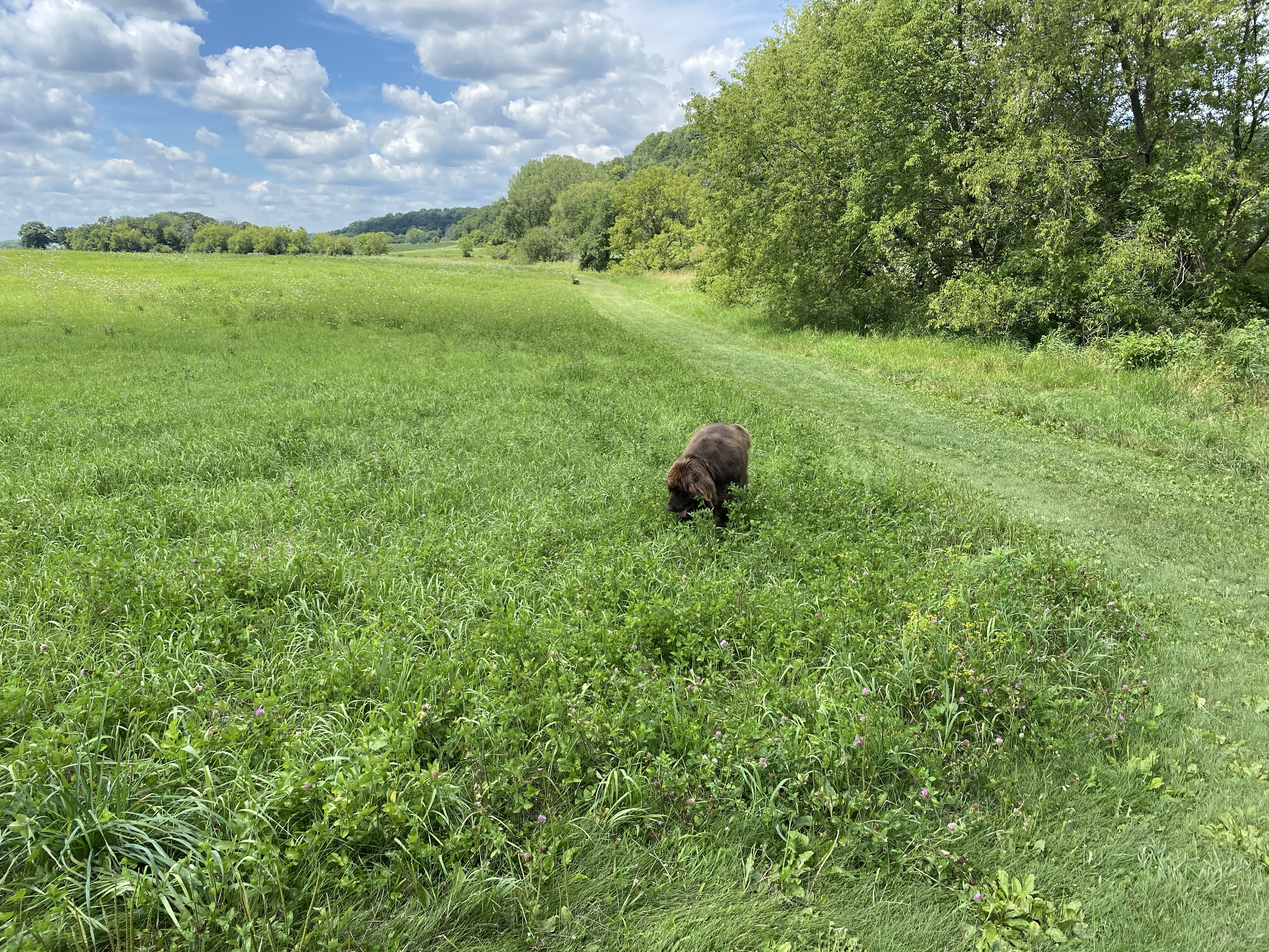 July 29, 2020. Today we brought our pup (yes, that’s our dog Moca, not a small horse in those pictures) with us to Indian Lake. He loves the dog park and we love exploring it with him. He is a gentle giant and such a good listener in so many ways. However, we don’t quite have the off-leash recall down yet (our bad, not Moca’s). Because he can only learn if we keep practicing, we practiced more today!