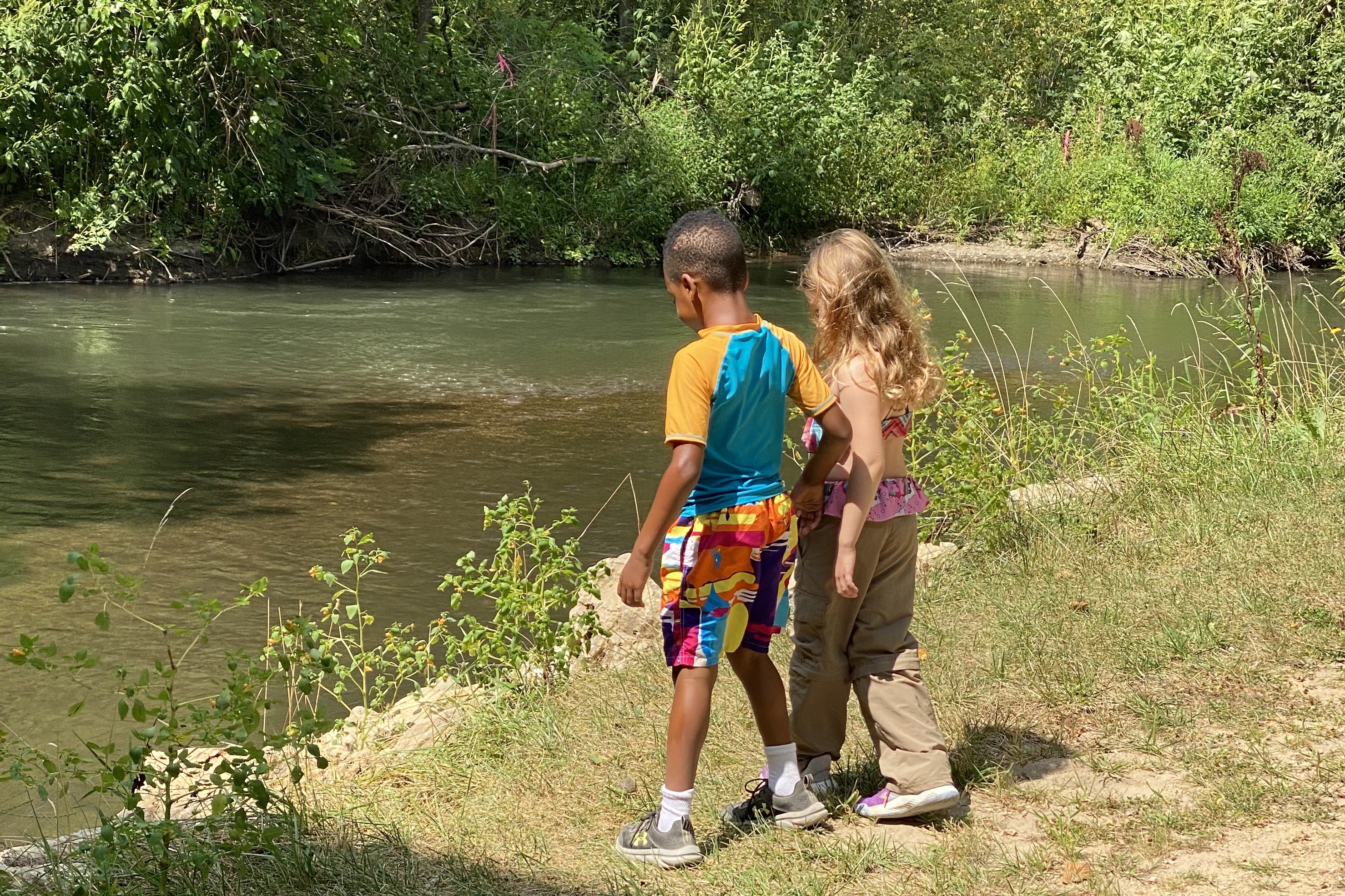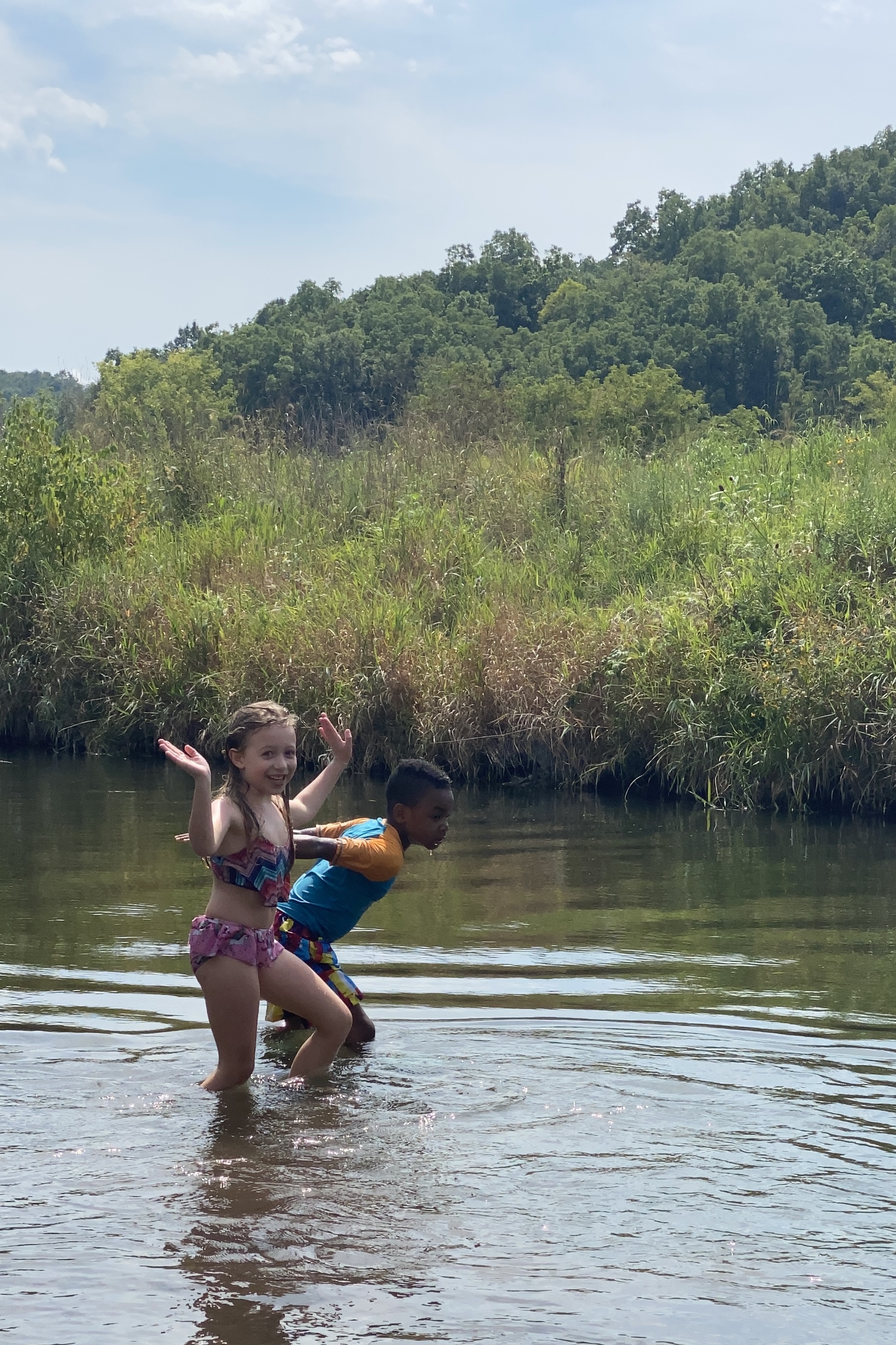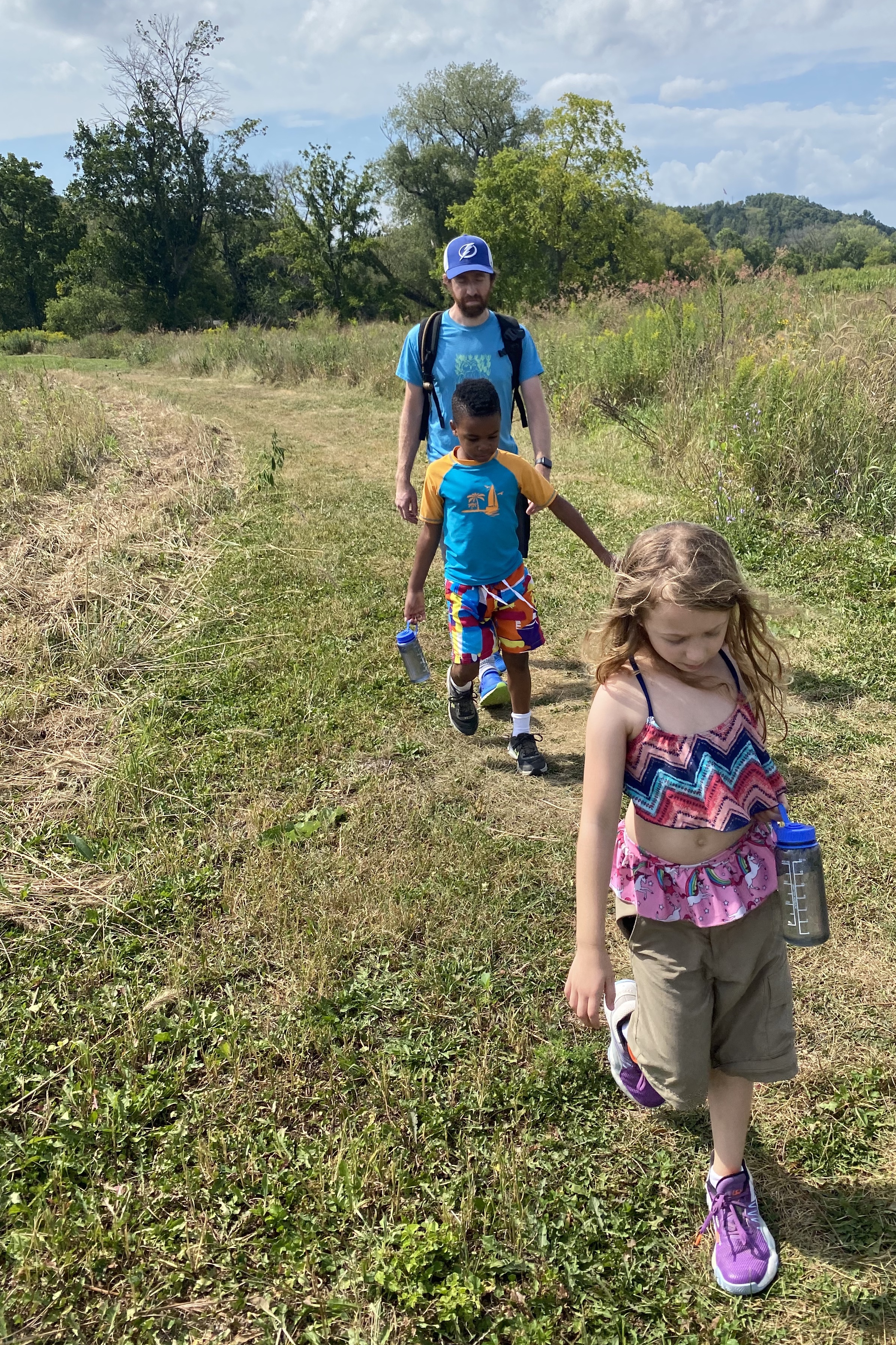 Today, we returned to the Wolf Run Trail with the commitment to let the kids play in the water again and the sense that I would merely wade in it once more (which, to be honest, felt like a remarkable feat given how warm and sunny the shoreline looked and how ice cold my toes were).