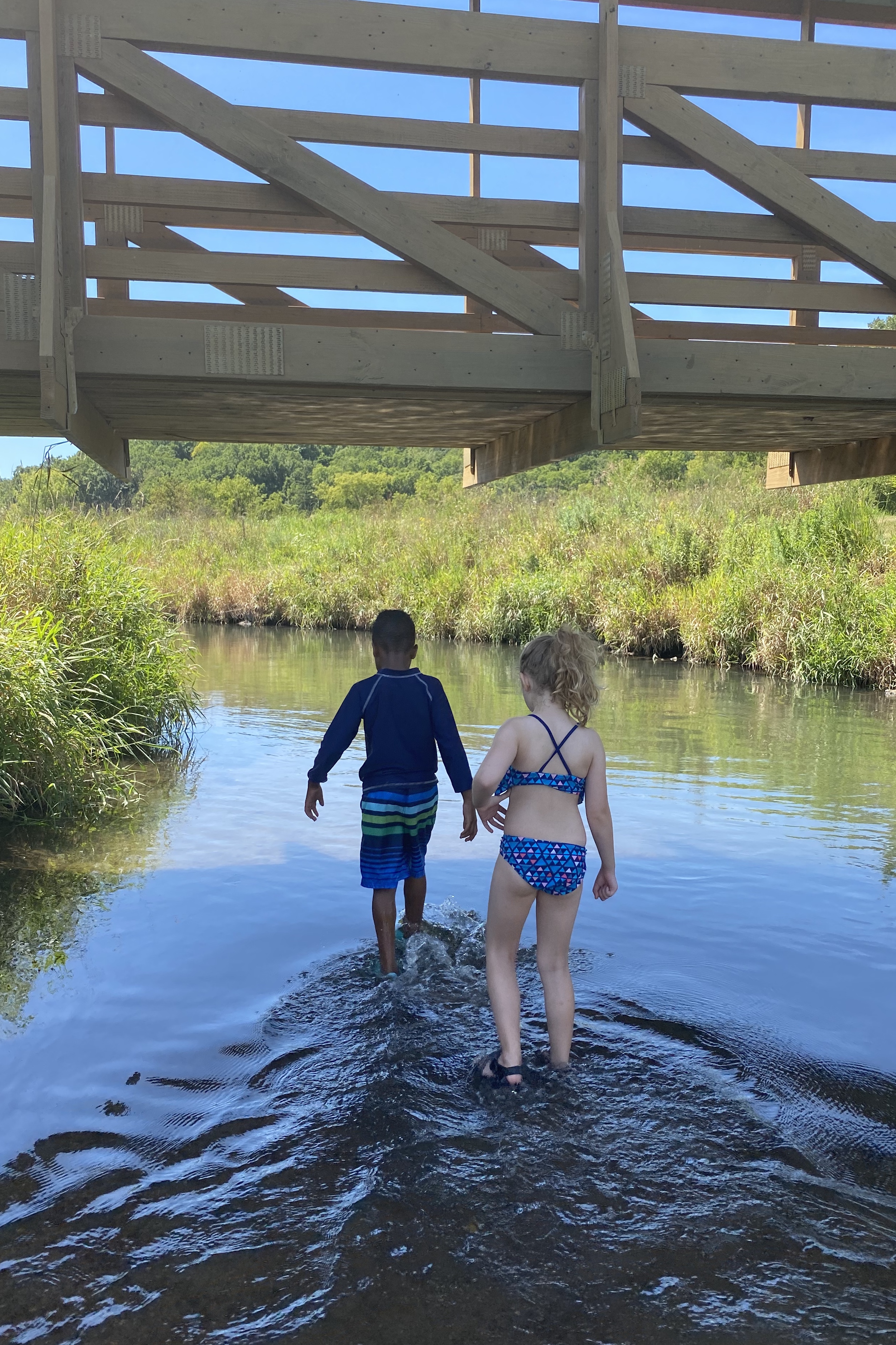 August 20, 2020. Today, thanks to a suggestion from our beloved neighbor Clara, we adventured on (and off) the Wolf Run Trail. The trail runs right along the Black Earth Creek and we throughly enjoyed both (the trail and the creek). Despite the fact that it was a creek and not a river, it had us thinking a lot about what it means to have peace like a river. I’ve sung that song countless times to my kids (I’ve got peace like a river…love like an ocean…joy like a fountain), yet, I’ve never fully understood the meaning of peace like a river.
